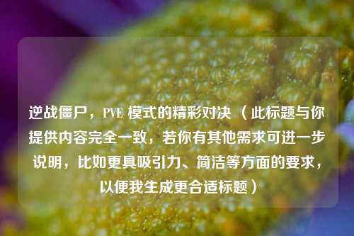 逆战僵尸 PVE 模式不仅考验玩家的战斗技巧,还锻炼了团队协作能力,每一次与僵尸的激烈对抗,都是一场精彩的对决,玩家们在这个充满挑战和***的模式中,不断突破自我,享受着游戏带来的乐趣,共同书写着属于他们的逆战传奇。
