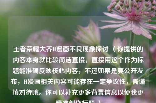 在王者荣耀这款热门游戏中,大乔是一位深受玩家喜爱的角色,近年来 *** 上出现了一些以“王者荣耀大乔H漫画”为关键词的不良内容。