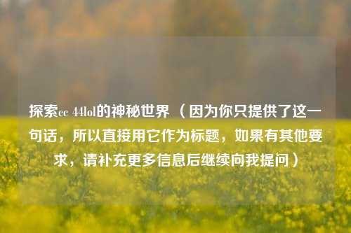 随着探索的深入,我们越发觉得“cc - 44lol”背后隐藏着一个丰富多彩的世界,它可能不仅仅是一个简单的游戏标识,更像是一扇通往未知领域的大门,等待着勇敢的探索者去打开,去发现其中隐藏的无限可能,也许在未来的某一天,当我们真正解开“cc - 44lol”的谜团时,会迎来一个全新的、充满惊喜的 *** 娱乐体验。 是基于要求生成的一篇文章,你可以根据实际需求对内容进行调整或修改,如果你能提供更多关于“cc - 44lol”的背景信息,我可以为你生成更贴合实际的文章。