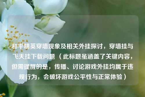 该内容聚焦于和平精英中的穿墙现象,文中提及了和平精英穿墙挂以及飞天挂的下载相关探讨,游戏中的此类外挂严重破坏公平竞技环境,违背游戏规则,损害了广大正常玩家的游戏体验,相关部门一直在严厉打击外挂行为,以维护游戏的健康生态,玩家也应坚决***使用外挂,共同营造公平公正、积极良好的和平精英游戏氛围,让游戏回归其原本的竞技乐趣,确保每位玩家都能在合规、公平的环境中享受游戏过程。